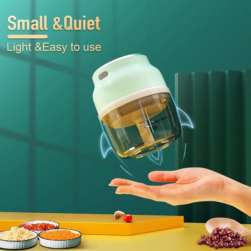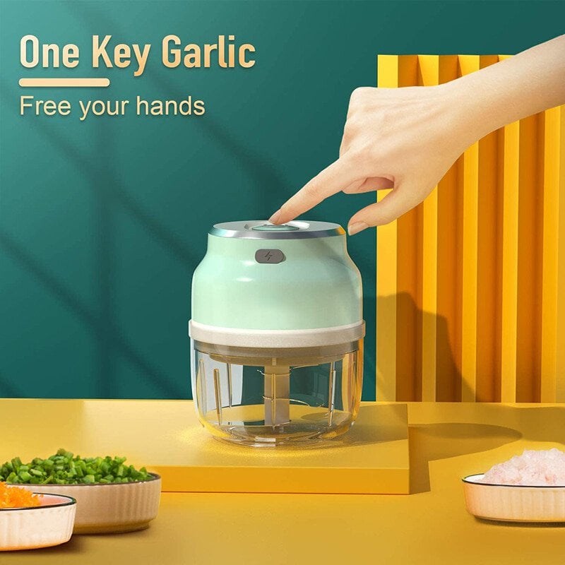 - 【Unique Experience】Great Kitchen Helper: Electric Garlic Press only need to press the button at the top to automatically stir, it will help you chop garlic, ginger, peppers, onions, nuts. Saving time and effort. (Note: Please cut the ingredients into small pieces before chopping them).